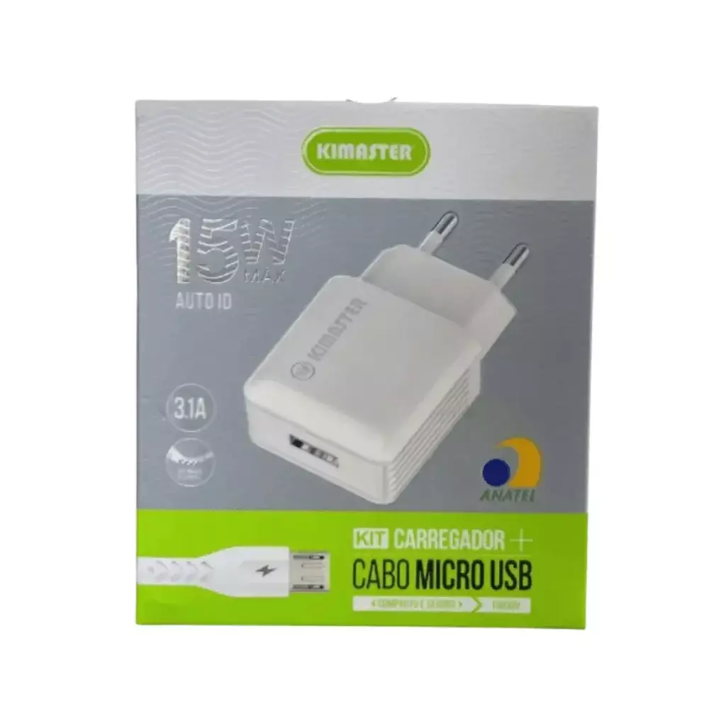 Kit carregador turbo de tomada da marca Kimaster, T110, compatível com o padrão Brasileiro de tomada